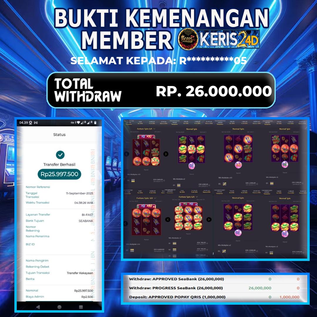 Setiap hari, member KERIS24D berhasil meraih jackpot besar dari berbagai provider slot ternama yang kami sediakan, seperti Pragmatic Play, Habanero, PG Soft, dan masih banyak lagi. Kami secara rutin menampilkan bukti screenshot atau rekapan kemenangan yang berhasil diraih, mulai dari kemenangan ratusan ribu hingga puluhan juta rupiah. Semua slip kemenangan ini kami hadirkan untuk membuktikan bahwa di KERIS24D, peluang menang itu nyata.