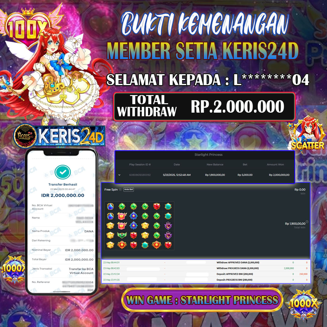 JACKPOT SLOT STARLIGHT PRINCES l 23 MEI 2025, Jackpot Slot Gacor, Kemenangan Slot, Bukti Kemenangan Slot, Kemenangan Slot Pragmatic Play, Menang Slot online, Slot Gacor, Situs Aman Terpercaya, WD Berapapun Pasti DI Bayar Tuntas, Maxwin Slot Online.