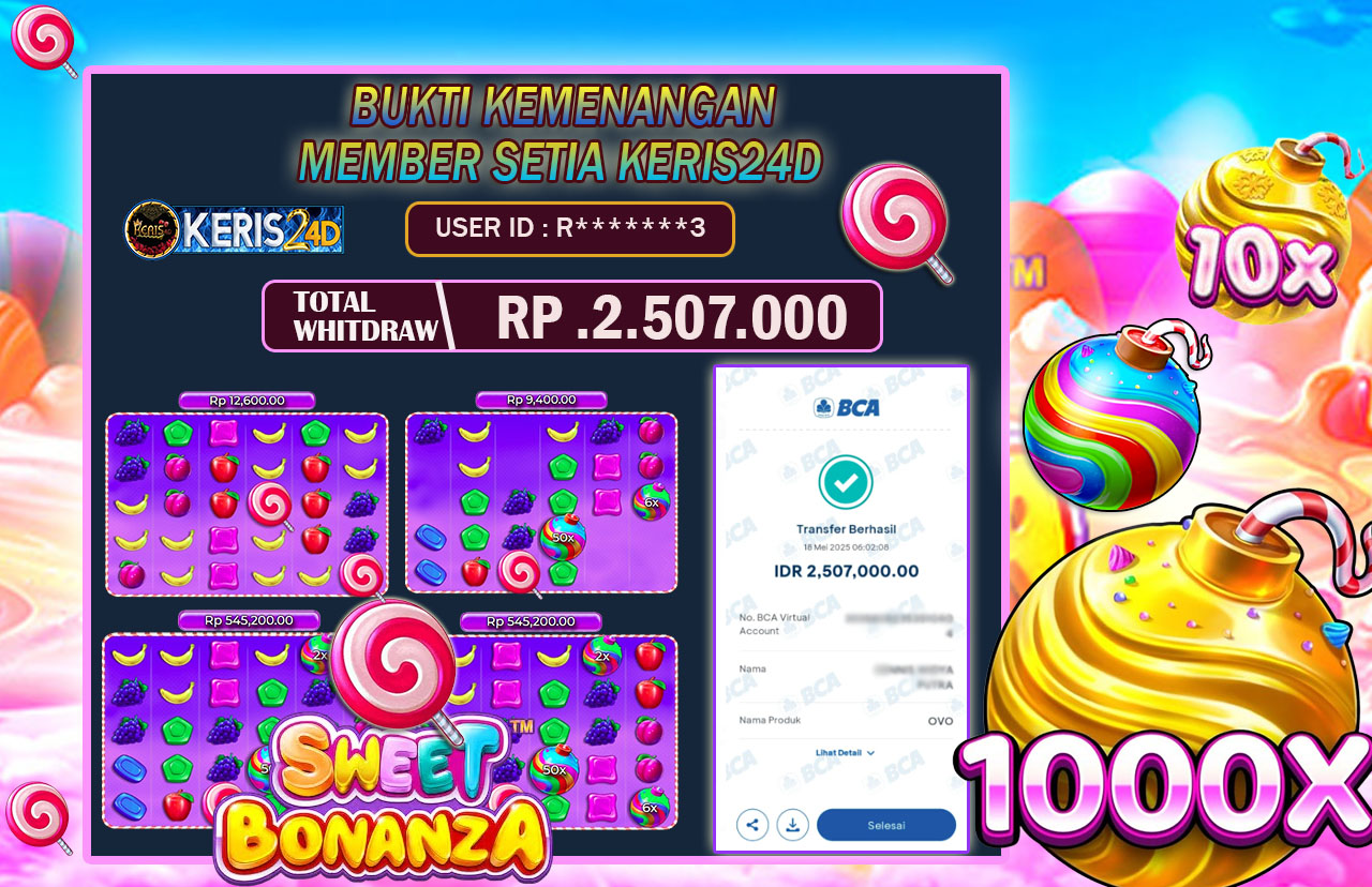 JACKPOT SLOT SWEET BONANZA l 18 MEI 2025, Jackpot Slot Gacor, Kemenangan Slot, Bukti Kemenangan Slot, Kemenangan Slot Pragmatic Play, Menang Slot online, Slot Gacor, Situs Aman Terpercaya, WD Berapapun Pasti DI Bayar Tuntas, Maxwin Slot Online.