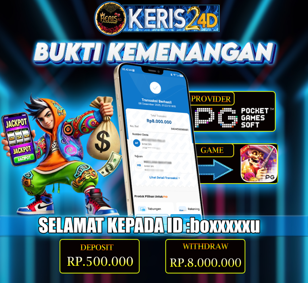 Setiap hari, member KERIS24D berhasil meraih jackpot besar dari berbagai provider slot ternama yang kami sediakan, seperti Pragmatic Play, Habanero, PG Soft, dan masih banyak lagi. Kami secara rutin menampilkan bukti screenshot atau rekapan kemenangan yang berhasil diraih, mulai dari kemenangan ratusan ribu hingga puluhan juta rupiah. Semua slip kemenangan ini kami hadirkan untuk membuktikan bahwa di KERIS24D, peluang menang itu nyata.
