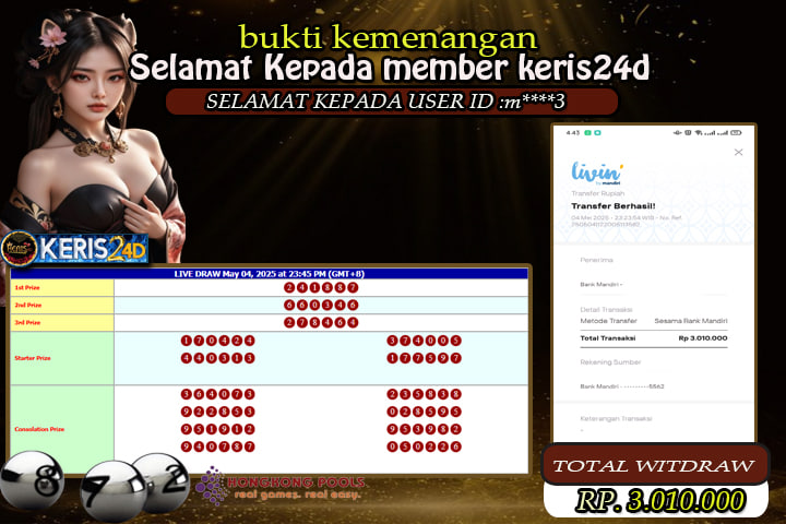 TOTAL KEMENANGAN : Rp. JACKPOT TOGEL KERIS24D,-